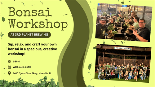 Event Description:Step into an experience of creativity, calm, and connection as Zen Den Bonsai Workshops brings our signature boutique bonsai experience to 3rd Planet Brewing in Niceville!