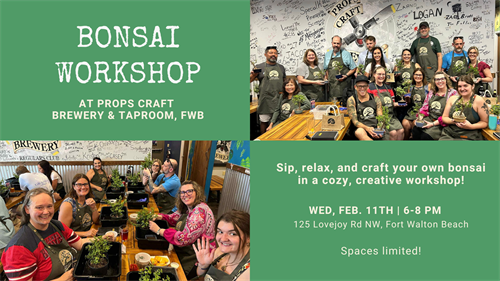 Event Description:Step into an experience of creativity, calm, and connection as Zen Den Bonsai Workshops brings our signature boutique bonsai experience to Props Brewery & Taproom in Fort Walton Beach!