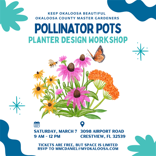 Keep Okaloosa Beautiful is partnering with the Okaloosa County Master Gardeners to host a 'Pollinator Pots - Planter Design Workshop'.